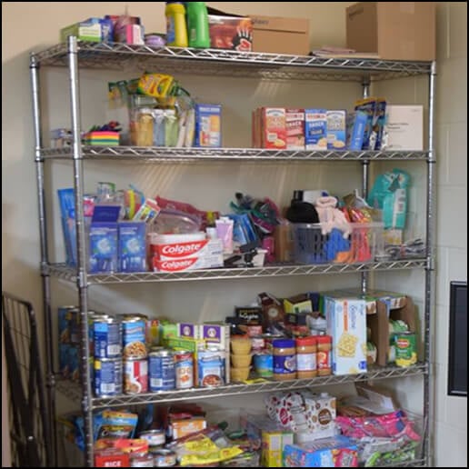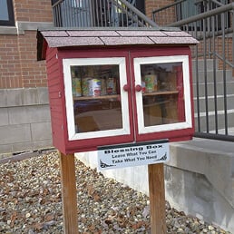 We stock food and hygiene products in a distribution box outside our east entrance. Anyone can take what they need. Our congregation supplies the items, and the deacons stock the box.